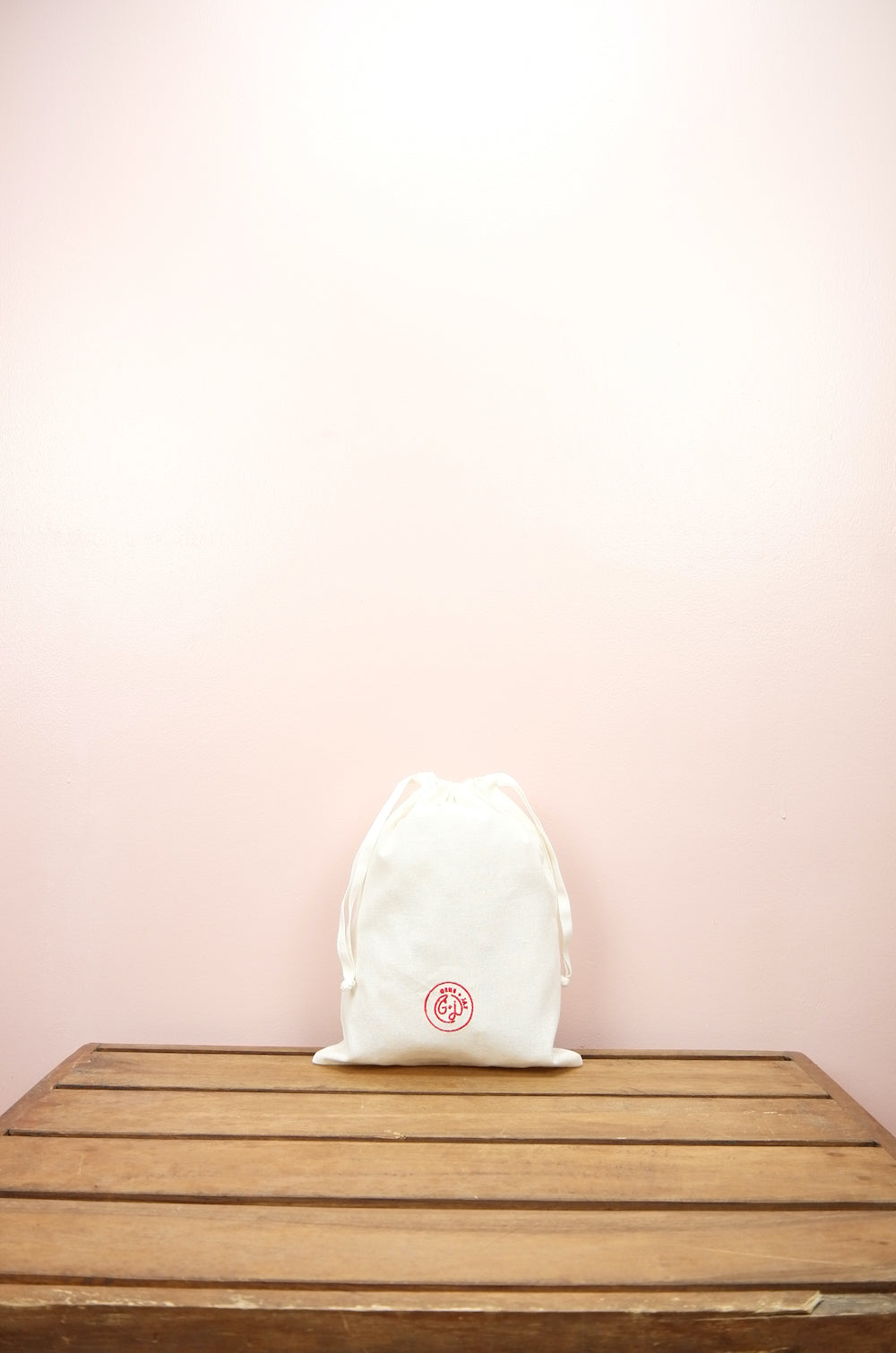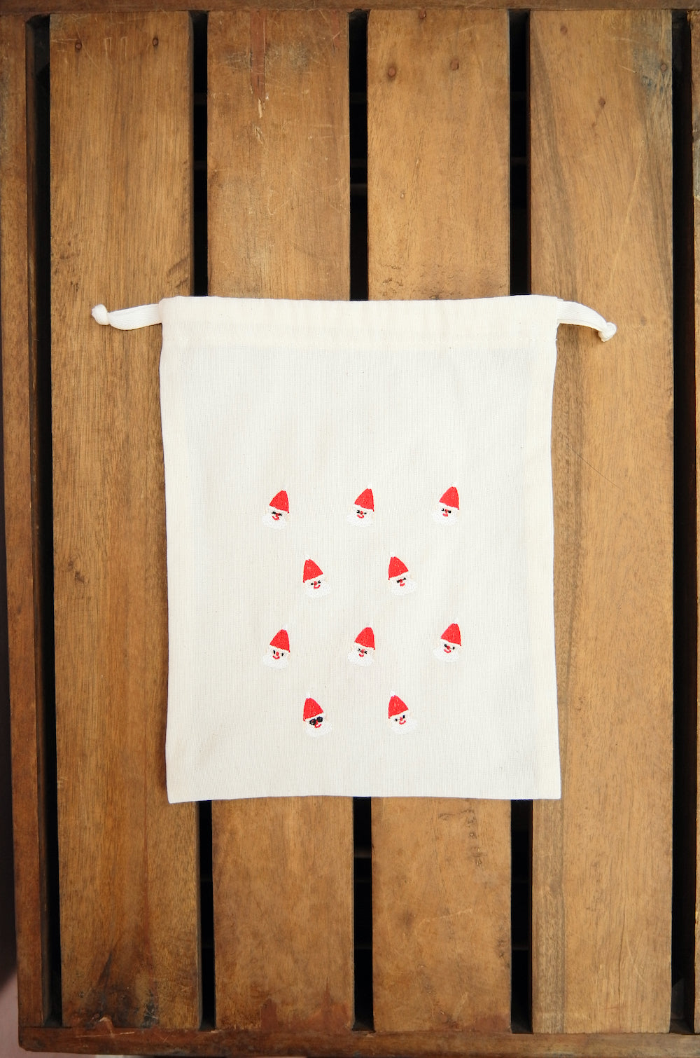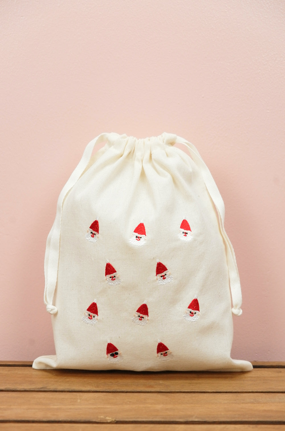 Mini Santas on Light Canvas Medium Drawstring Pouch