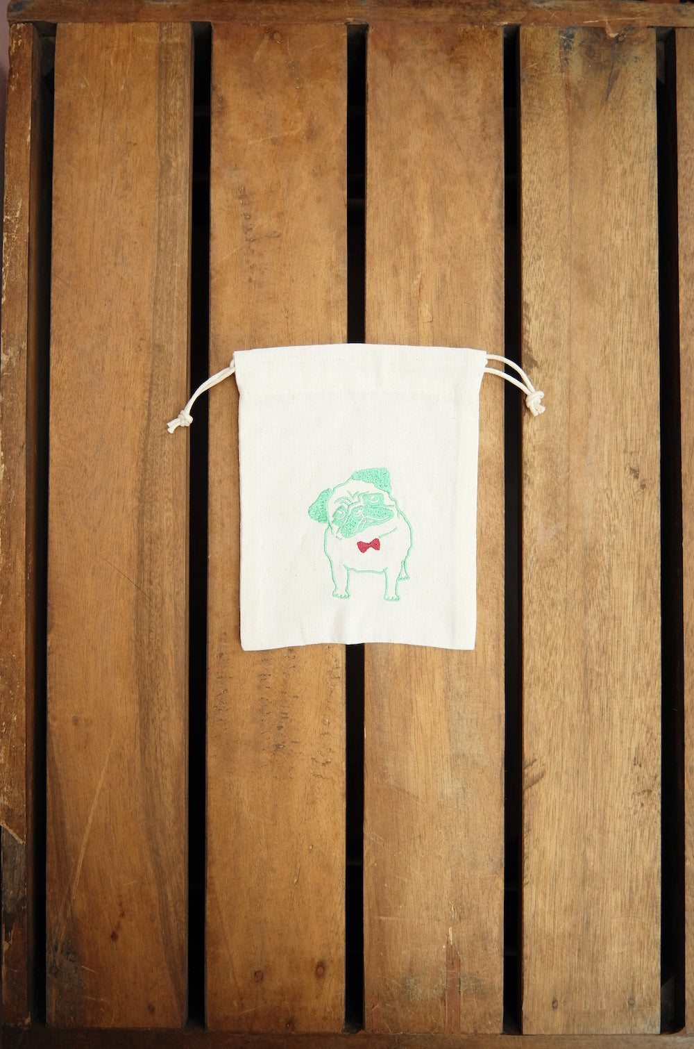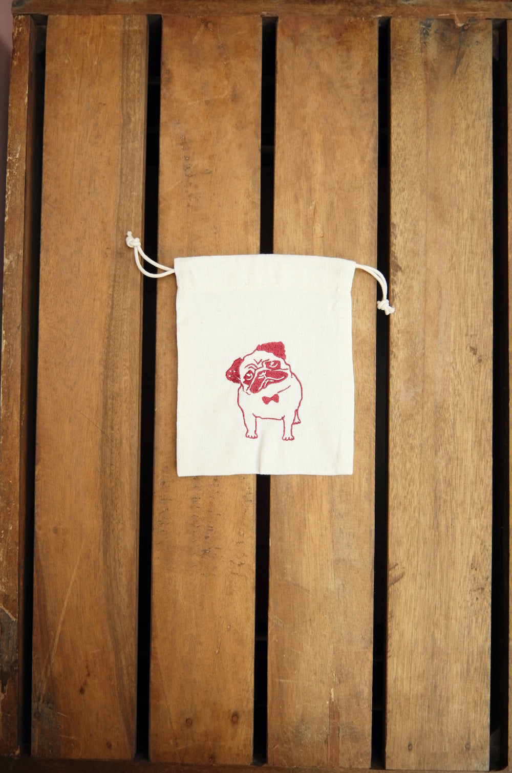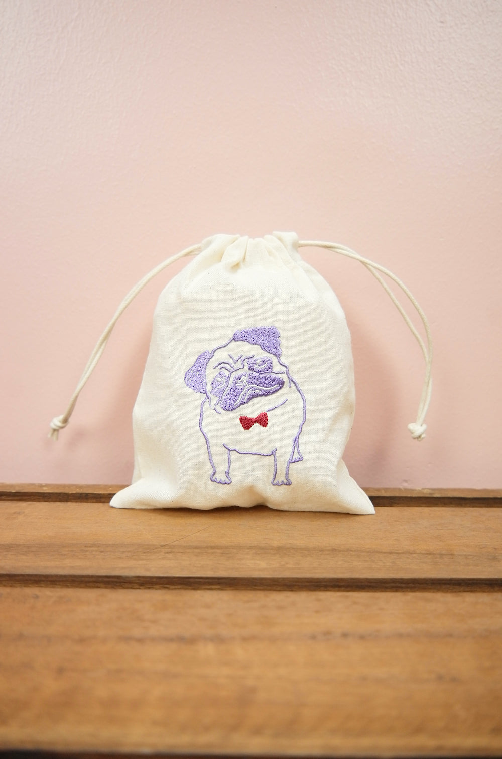 Dapper Pug (Available in 4 Colors) on Light Canvas Mini Drawstring Pouch