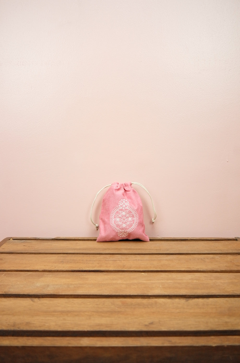 Dreamcatcher on Red Cotton Chambray Mini Drawstring Pouch