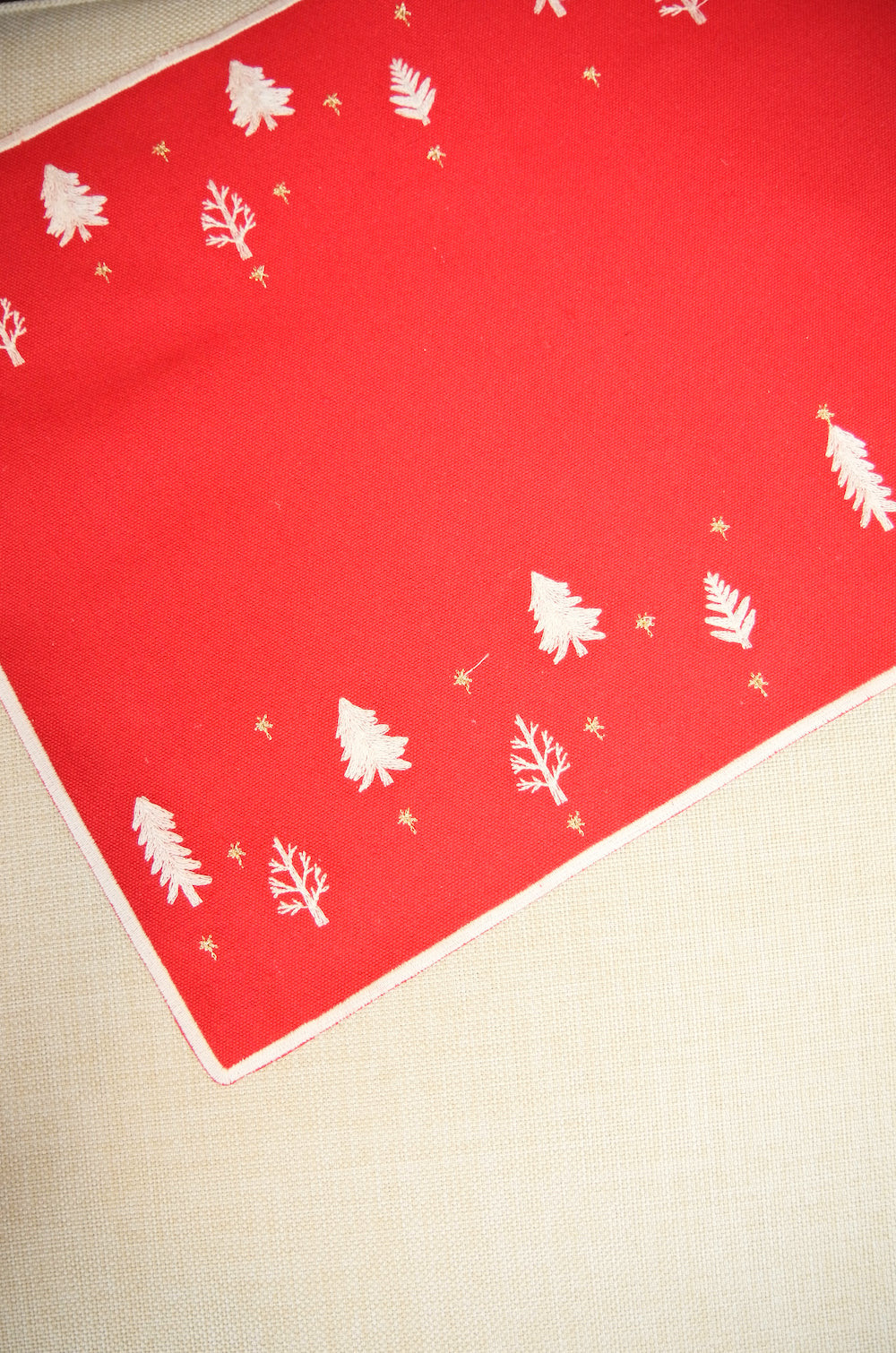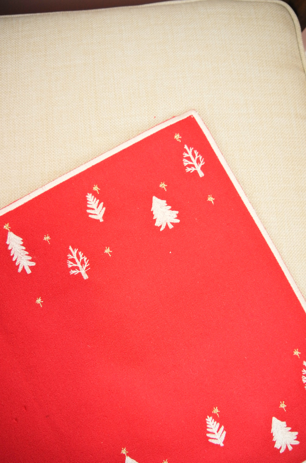 Mini Trees on Red Canvas Placemat