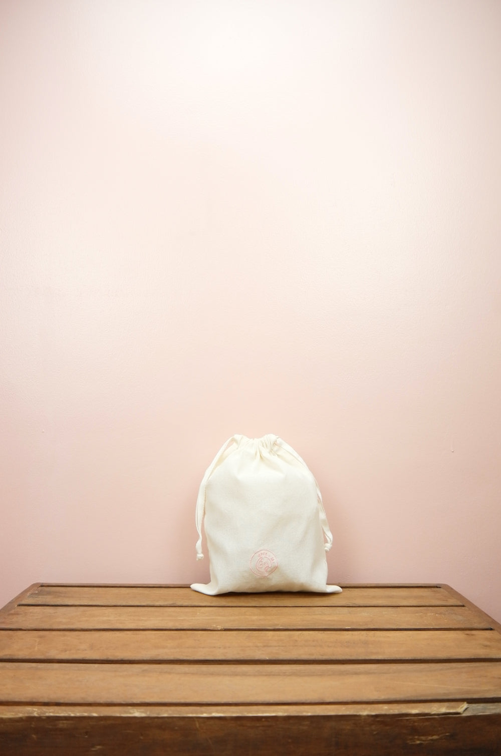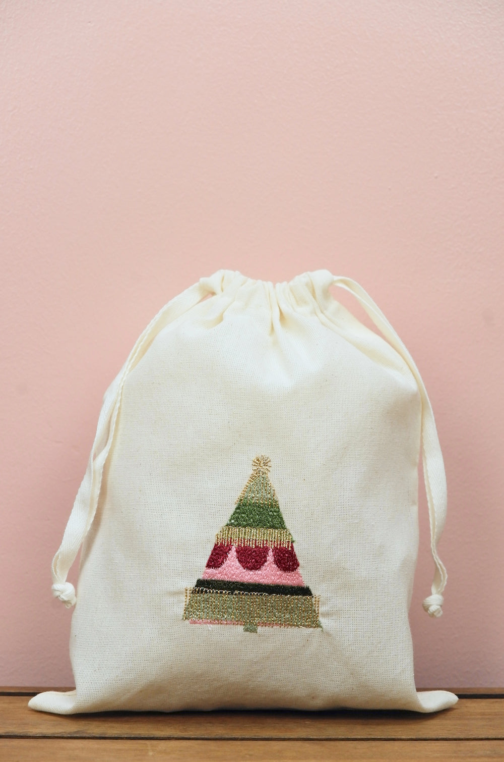 Pink and Green Christmas Tree on Light Canvas Medium Drawstring Pouch